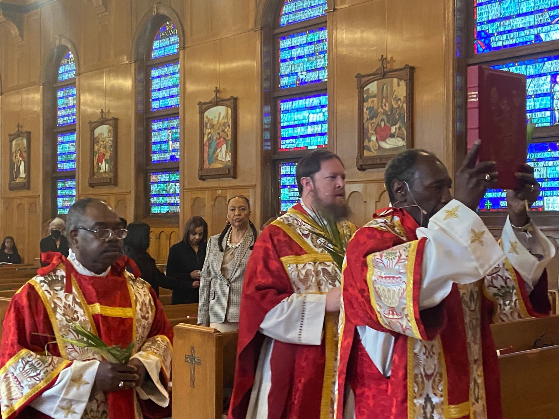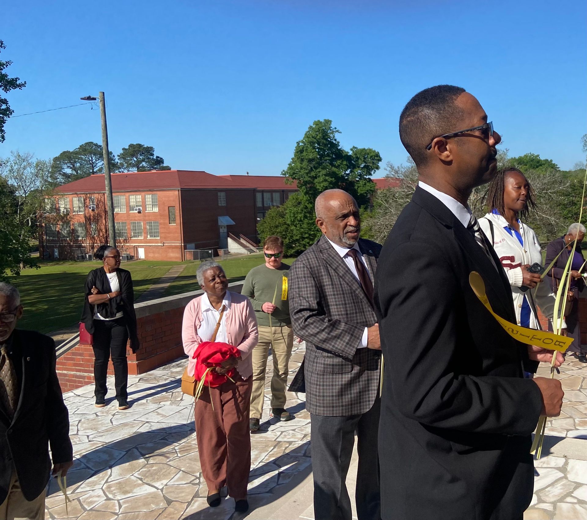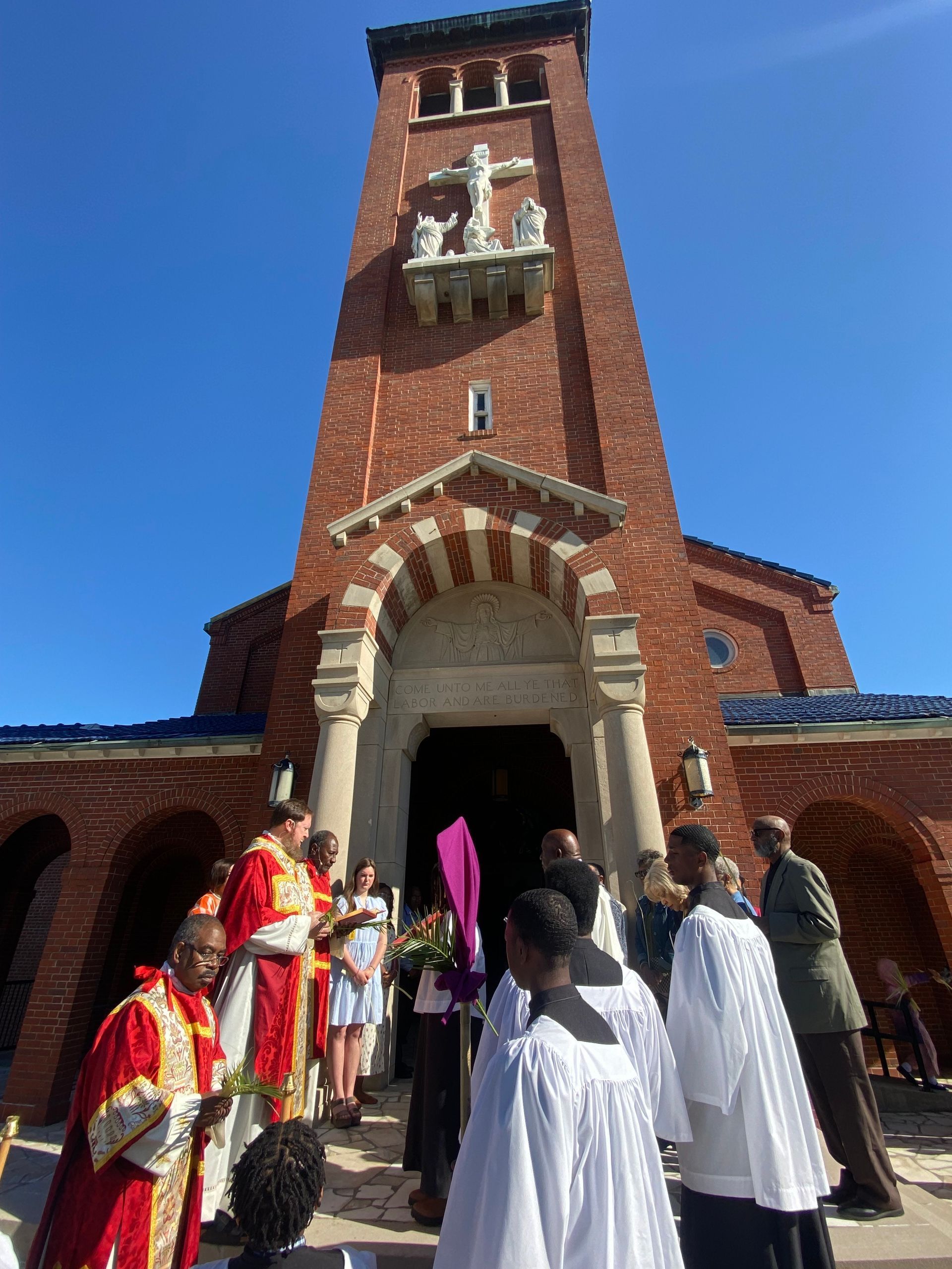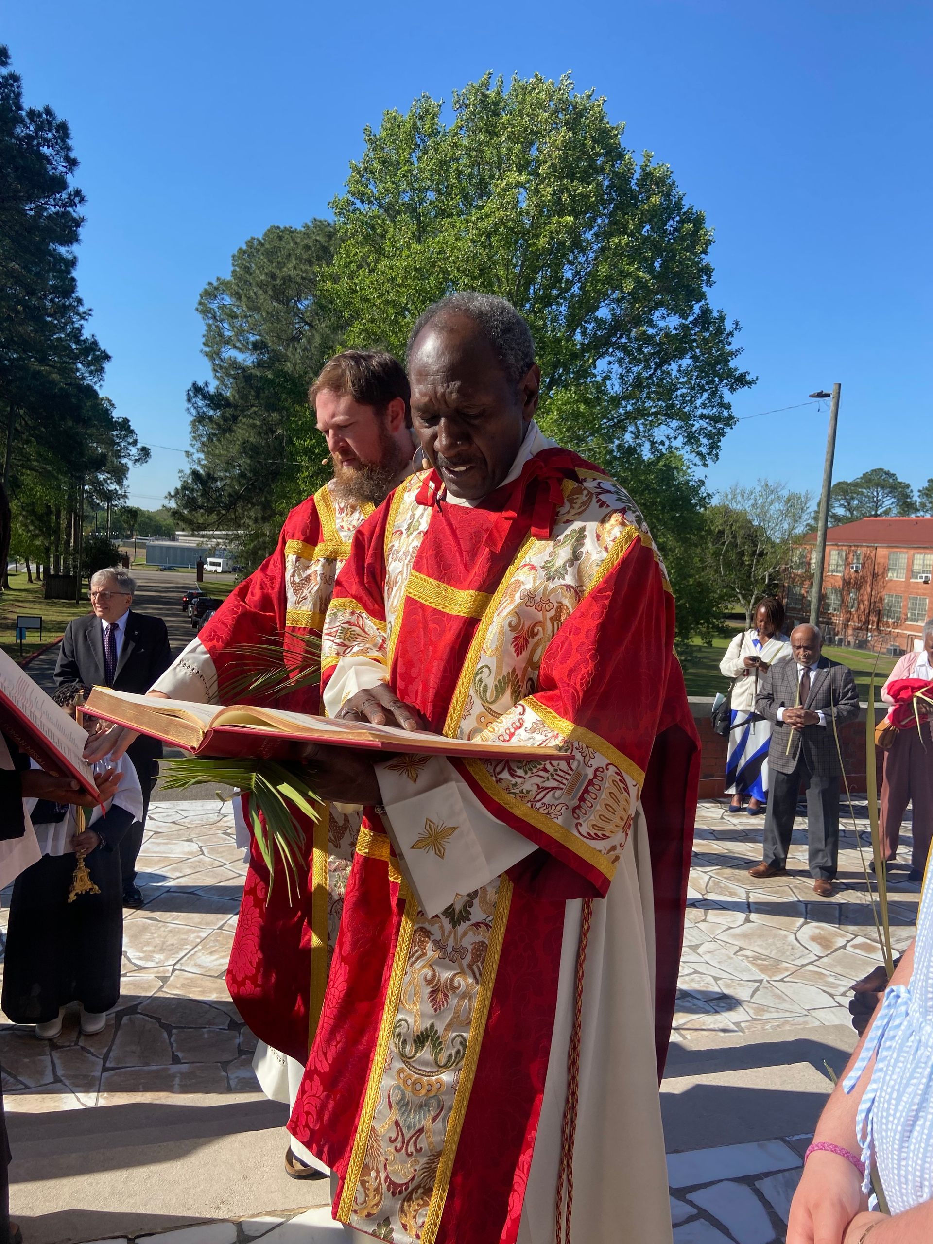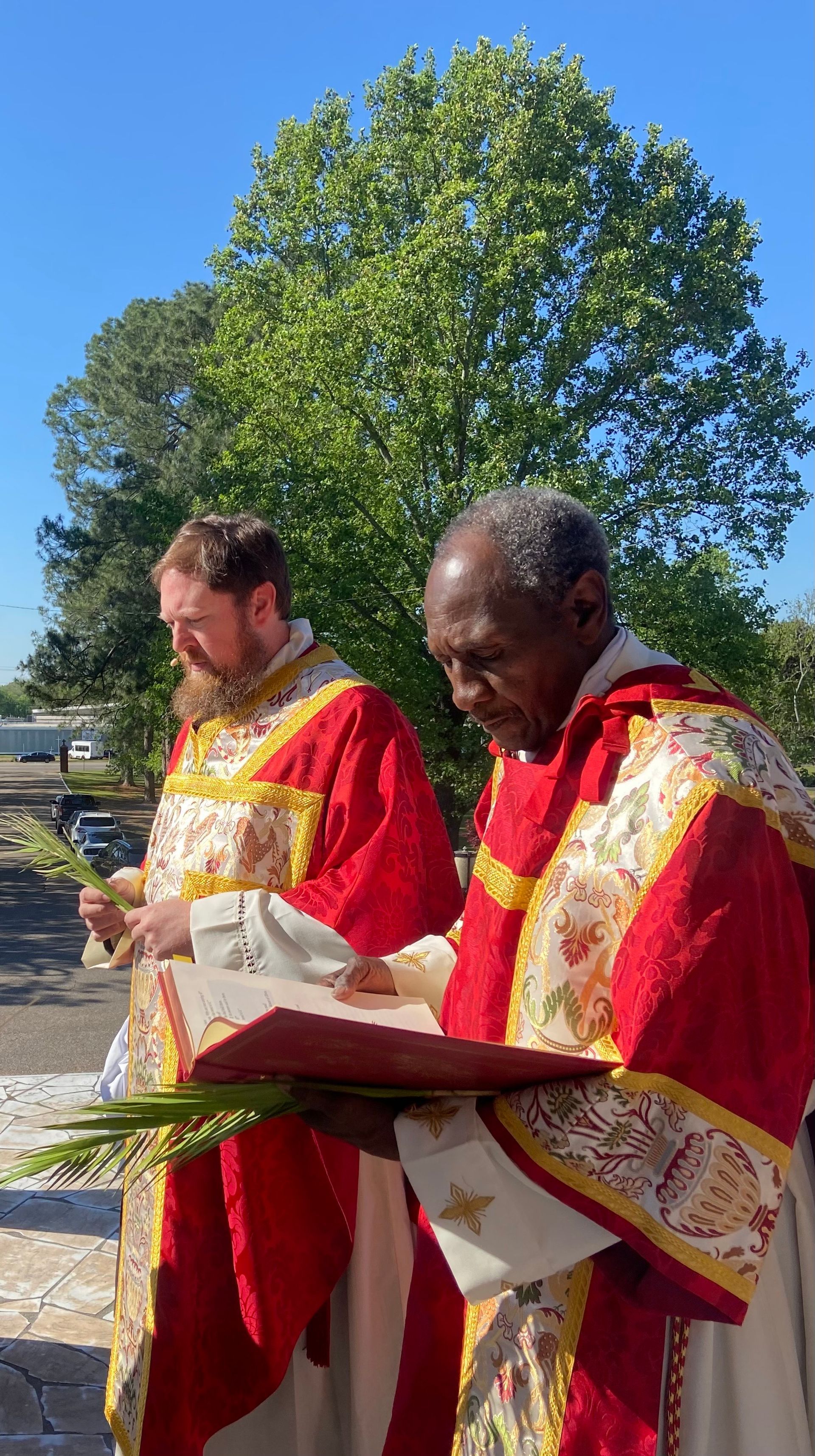 Fr. Jones and Dcn. Clarence begin our Palm Sunday celebration on the front porch.